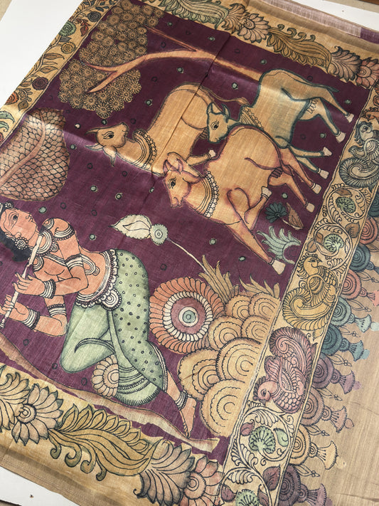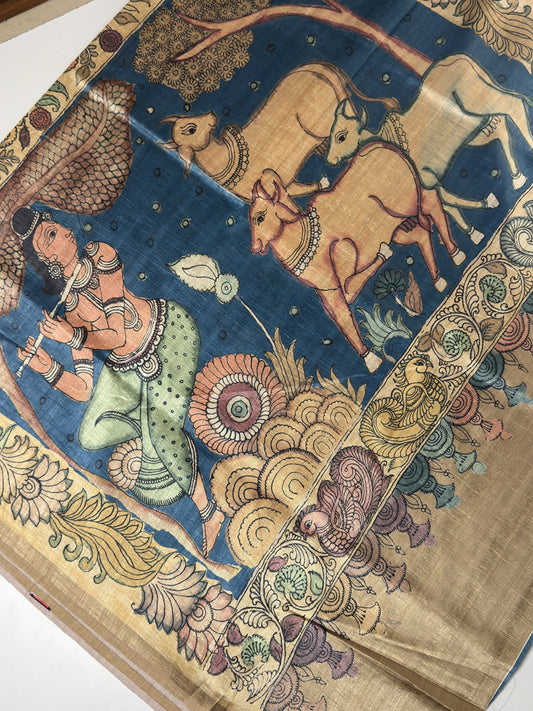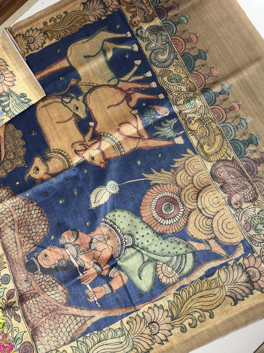 Semi Tussar Saree With Kalamkari Prints
