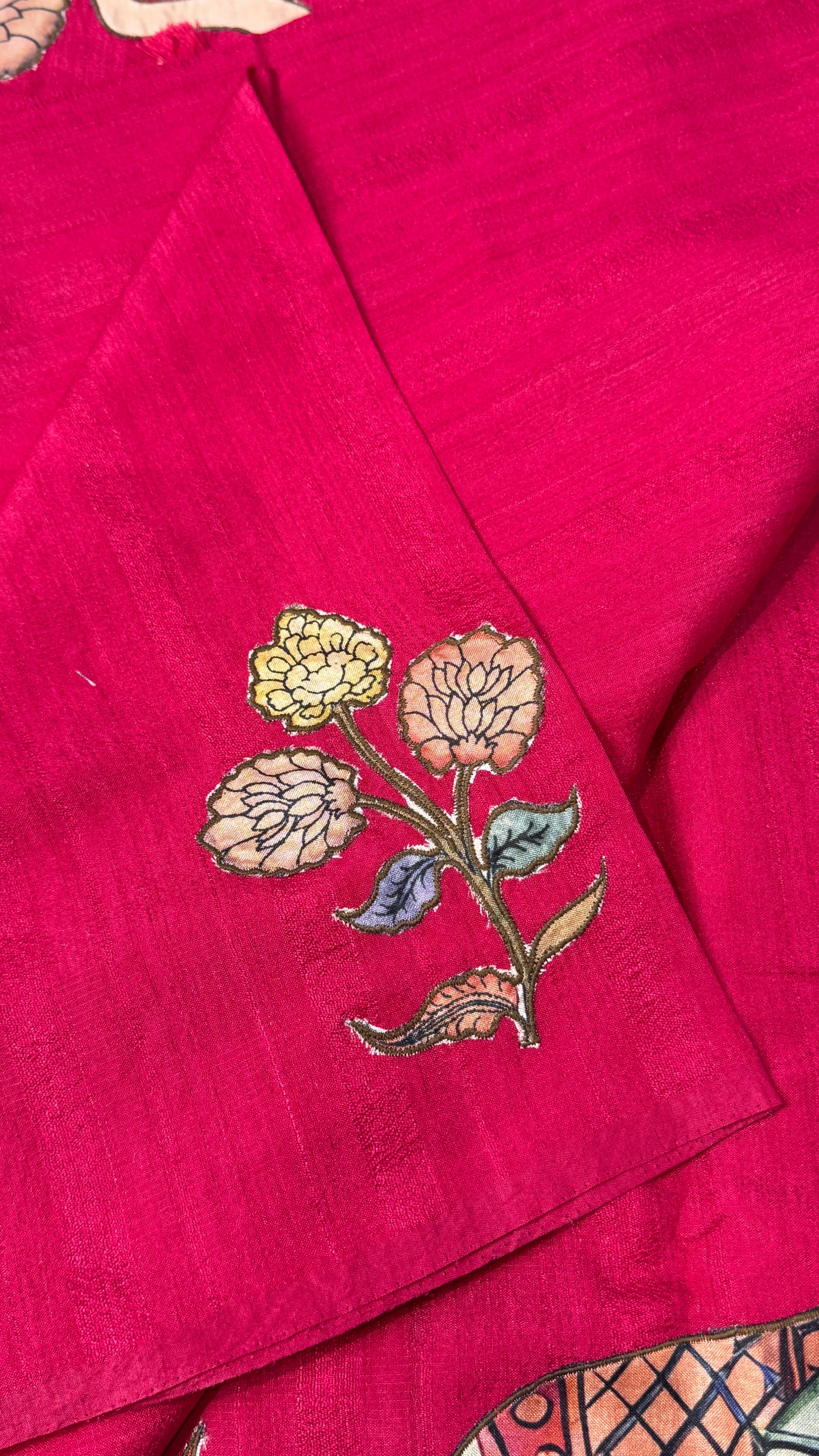 We’re excited to introduce our much-loved Kalamkari Appliqué Saree in rich semi tussar fabric, bringing together elegance, tradition, and effortless sophistication. The saree features intricate appliqué work throughout, adding beautiful texture and artisanal charm to every drape.