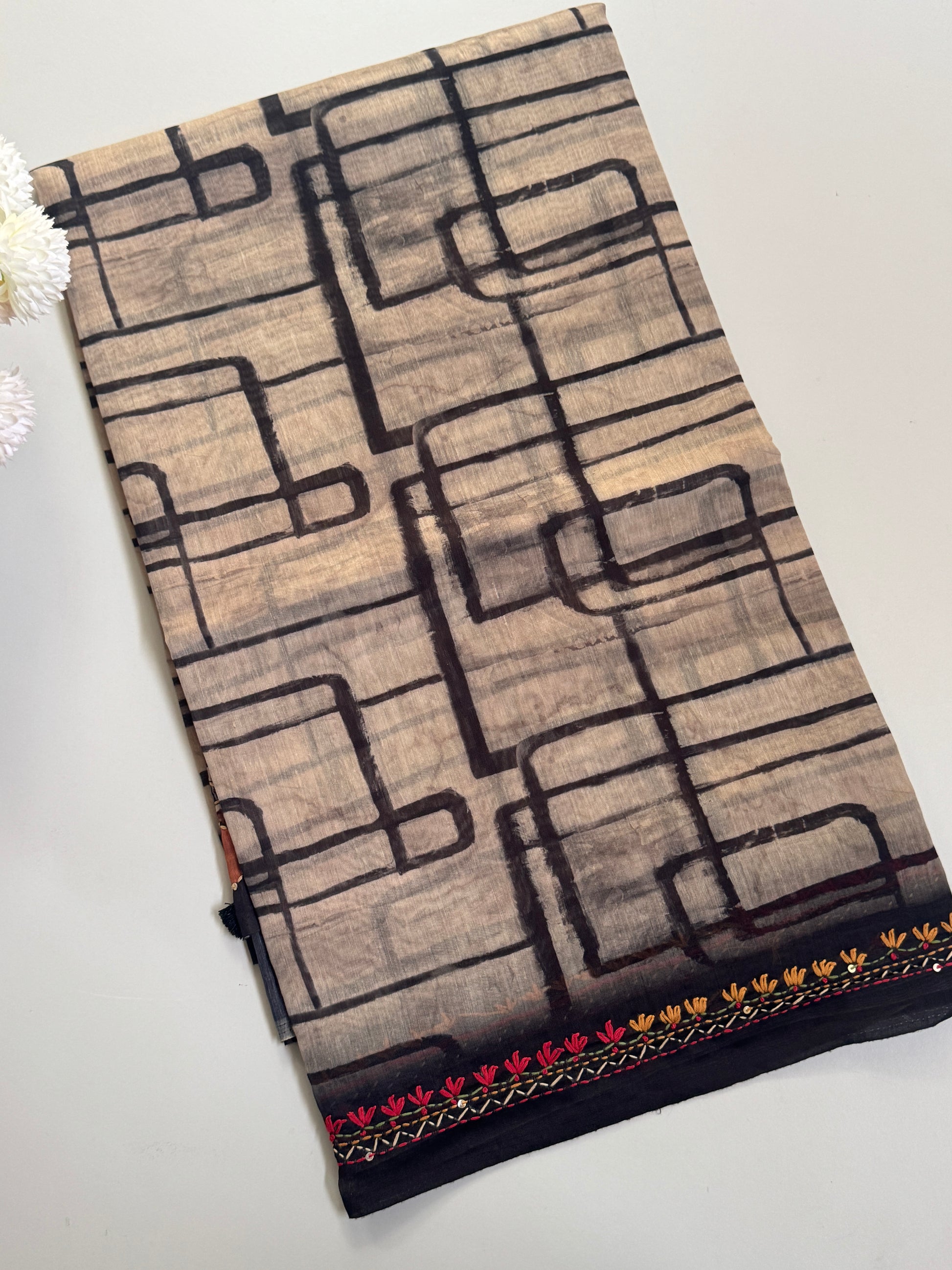 Black & White Semi Chanderi Silk Saree is a dream to drape – light in weight yet rich in look. Adorned with a unique geometric pattern and finished with a beautiful knot-work border, it comes with a matching printed blouse to complete the look.