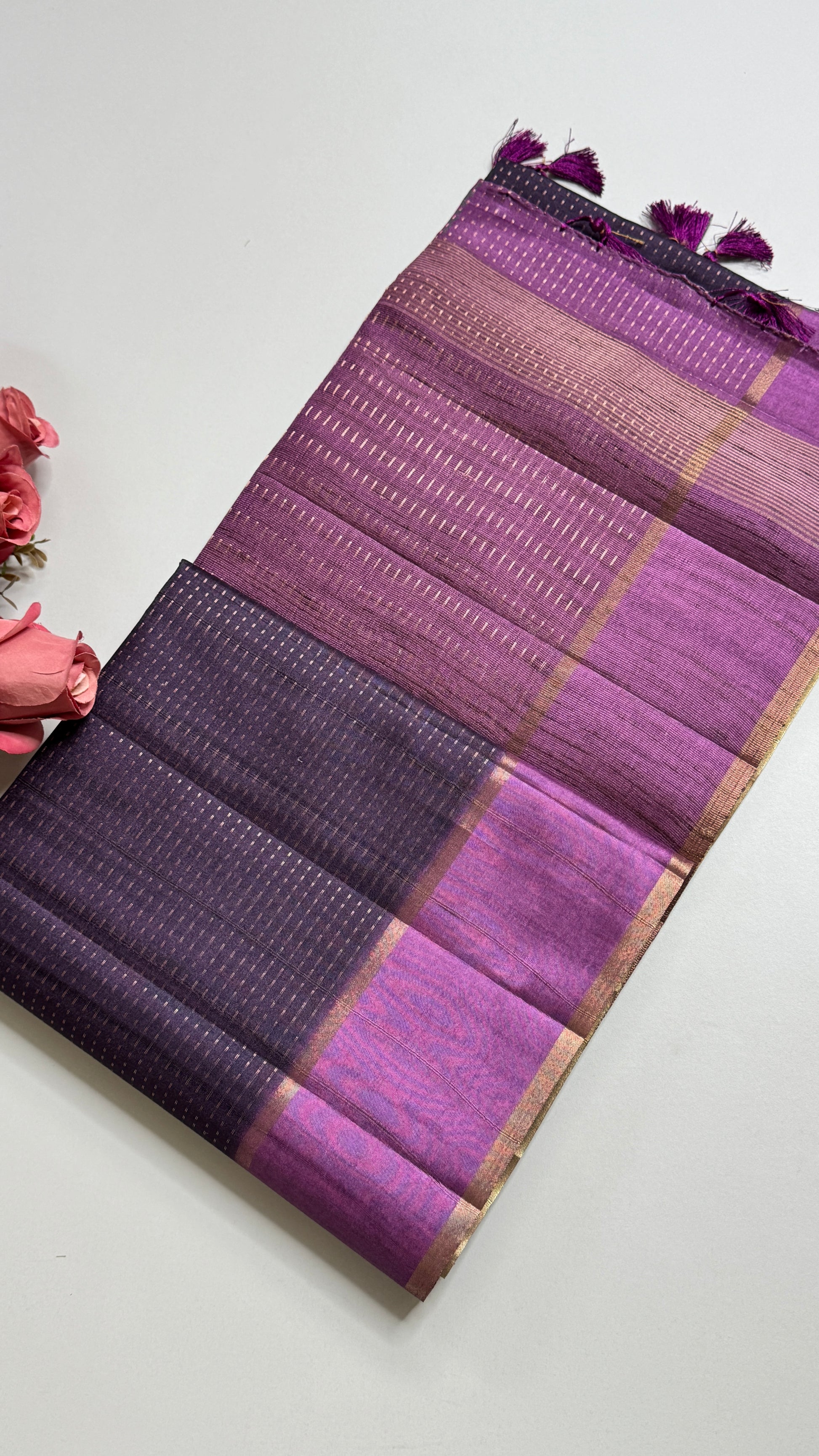 Semi Raw Silk Saree with Jute Fabric Pallu & Blouse.