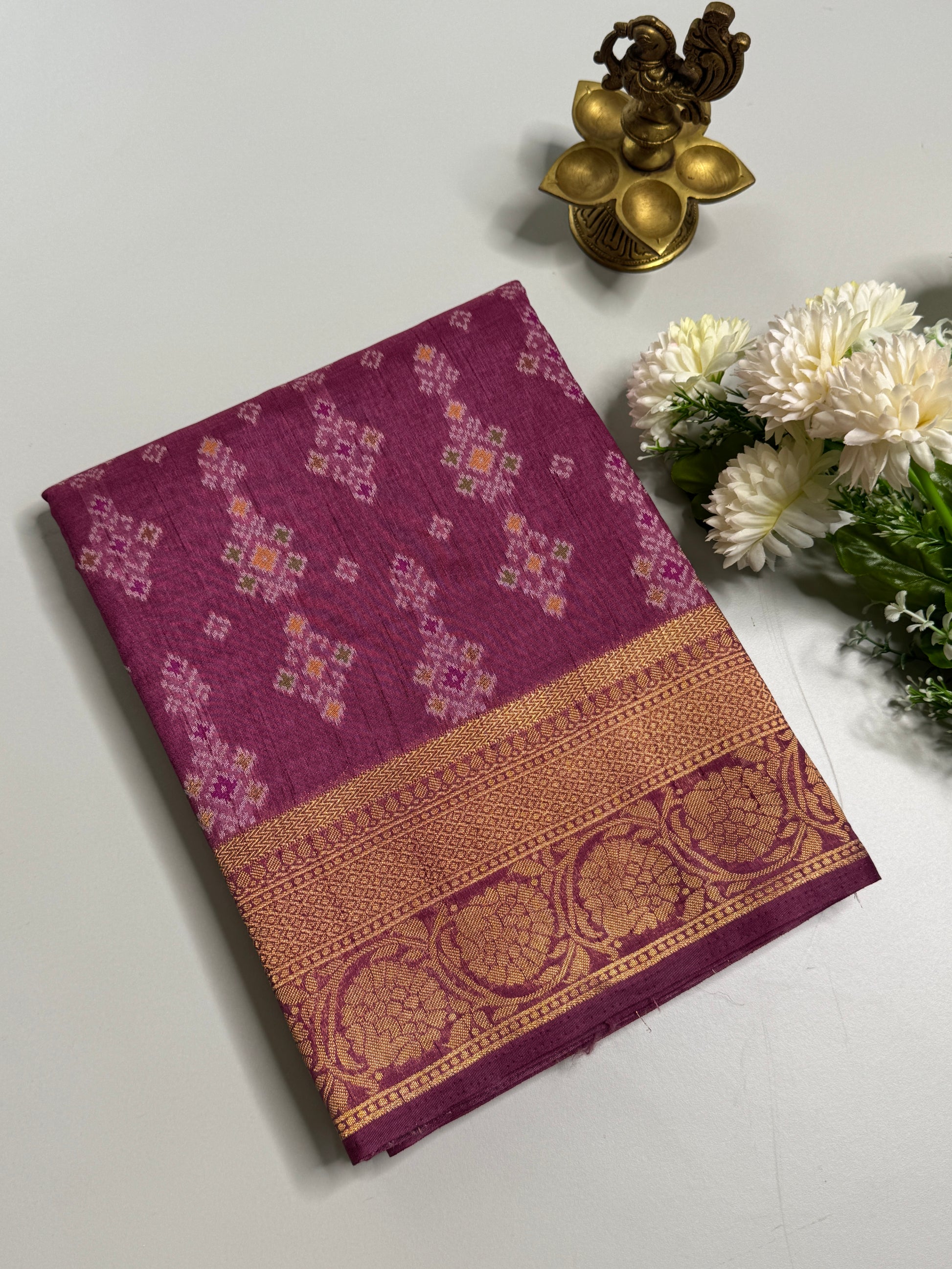 Elevate your festive wardrobe with this stunning Patola Weaving Saree in Semi Tussar, featuring a beautifully woven self zari border that adds just the right touch of elegance and shimmer.