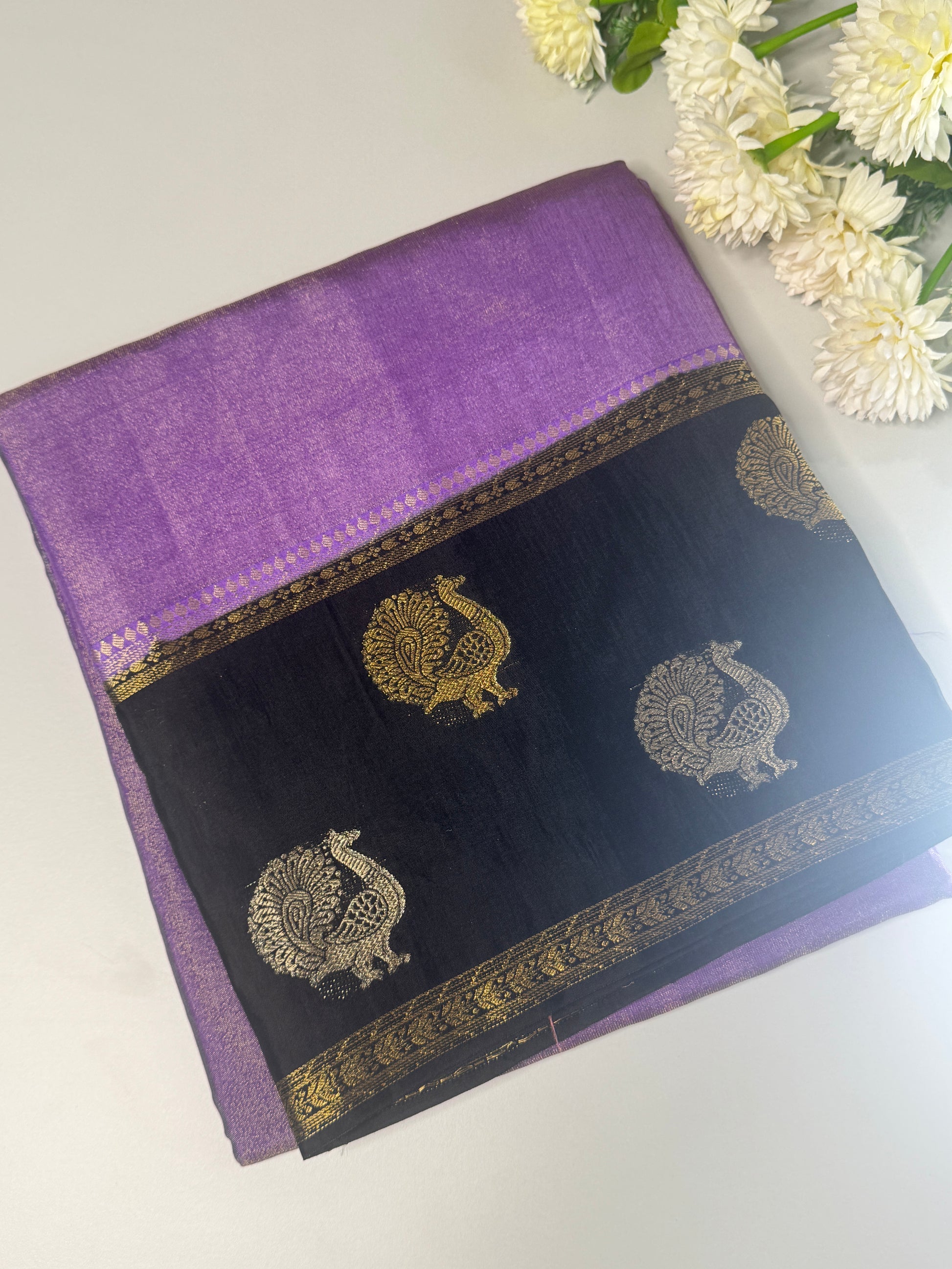 ✨ Shimmer Viscose Georgette Saree with Traditional Annam Motif Border & Contrast Banarasi Meenakari Blouse