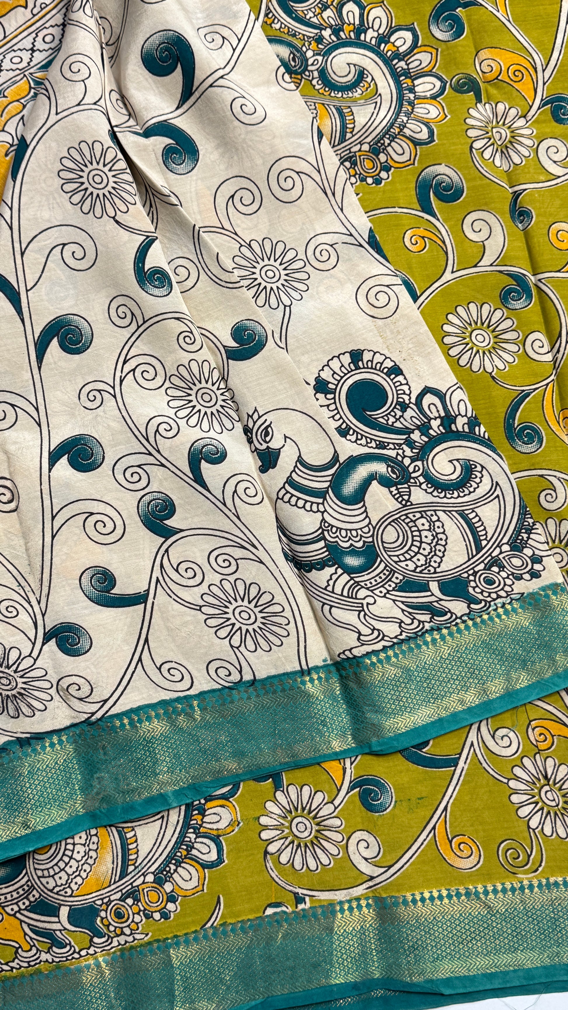 Kalamkari Chennuri Silk Saree with Nizamborder. Which includes a stunning Kalamkari blouse piece adorned with beautiful kalamkari prints.